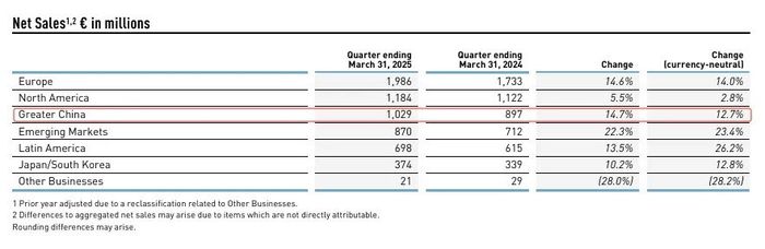 相比之下,阿迪达斯和安踏两大劲敌势头正盛。阿迪达斯突出一个“猛”:Q1营收同比增长13%至61.53亿欧元,营业利润暴涨82%至6.1亿欧元,大中华区功不可没,连续八个季度实现增长;安踏则胜在够“稳”:上一财年总营收、归属股东净利润同比分别增长13.6%和52.4%至708.26亿元和155.96亿元,若算上旗下亚玛芬体育,安踏总营收首次突破千亿大关达到1080.86亿欧元,多品牌战略功不可没,FILA营收增速回落之际,迪桑特、可隆等子品牌收入合计大涨53.7%。